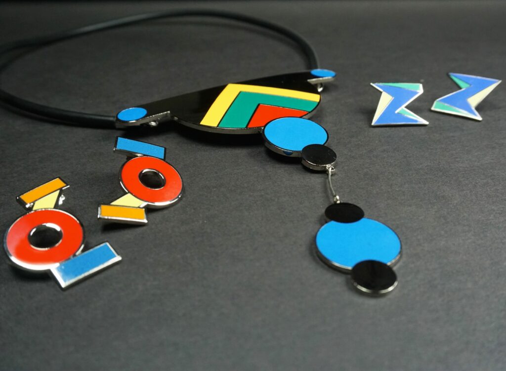 What do Pee-Wee Herman, 80’s design and Leroy’s Place all have in common? The Memphis Milano movement! This quintessentially 80’s aesthetic influenced the mood and decor of our Leroy’s Place spaces, and we are honored to carry an amazing collection of vintage jewelry designed by members of the iconic Memphis Group.