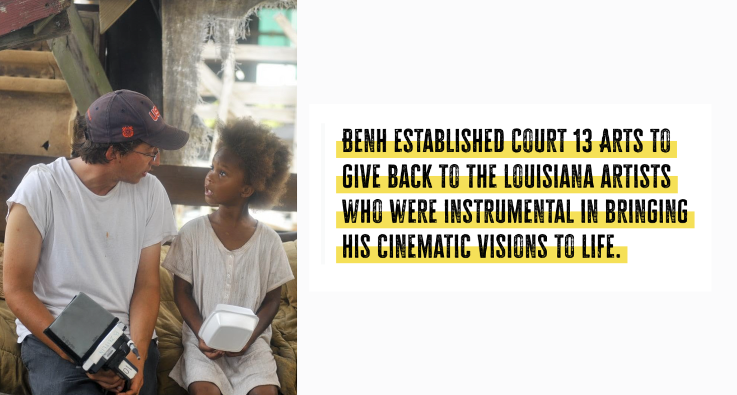 A New York City native, Benh Zeitlin’s passion for storytelling led him to co-found the independent filmmaking collective, Court 13, during his time at Wesleyan University. His directorial debut, “Beasts of the Southern Wild,” is an incredible film that received critical acclaim and showcased his commitment to community-driven art. Following the film’s success, Benh established Court 13 Arts to give back to the Louisiana artists who were instrumental in bringing his cinematic visions to life. ​